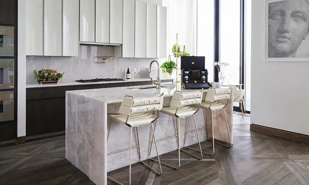 Celebrating the tower's architectural heritage, Chraibi's vision distills the elegance of 1920s Art Deco geometry, verticality, symmetry, and restraint into a contemporary language of light, proportion, and materiality. The result is an interior that feels both historically grounded and unmistakably modern, where architectural clarity frames elevated city living.